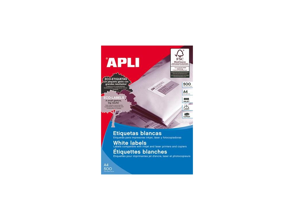 univerzálne biele etikety určené pre laserovú, atramentovú tlač a do kopírovacích strojov s certifikátom FSC zadarmo stiahnuteľný softver APLI Soft na tvorbu etikiet: www.apli.comDodatočné parametre