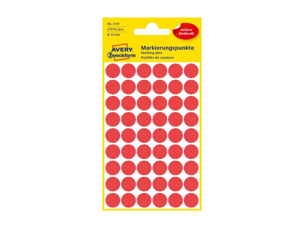 Kruhové etikety na ručný popis. Priemer 12 mm, v balení 270 etikiet. Farba červená.Dodatočné parametre