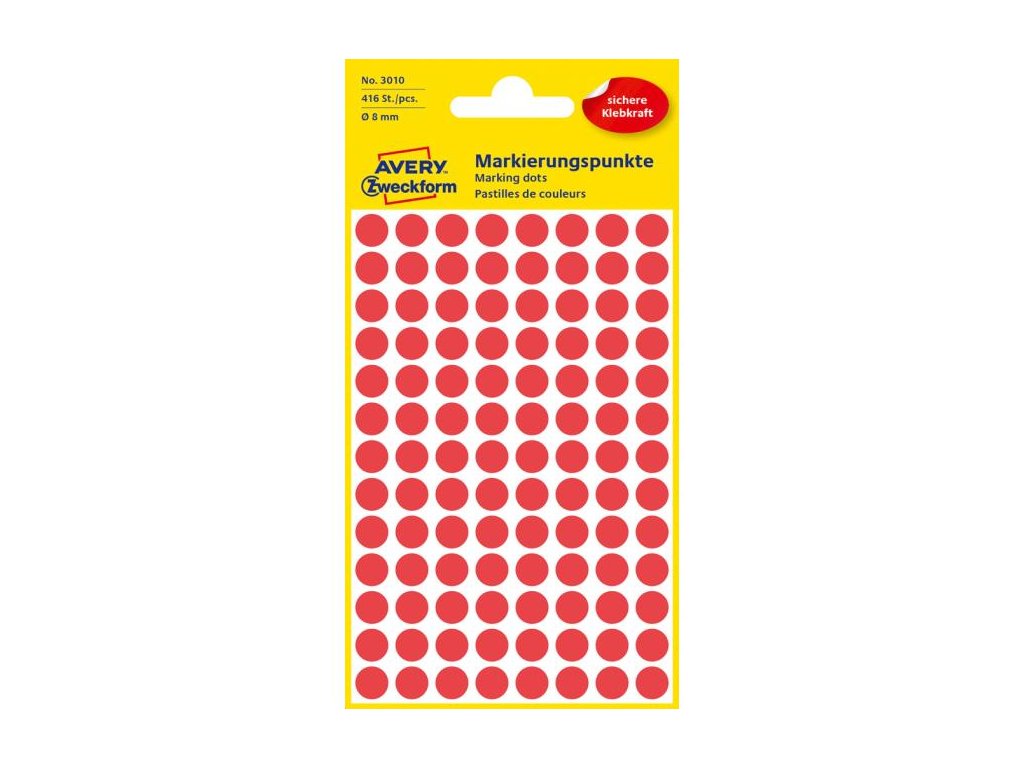 Etikety kruhové 8mm Avery červené