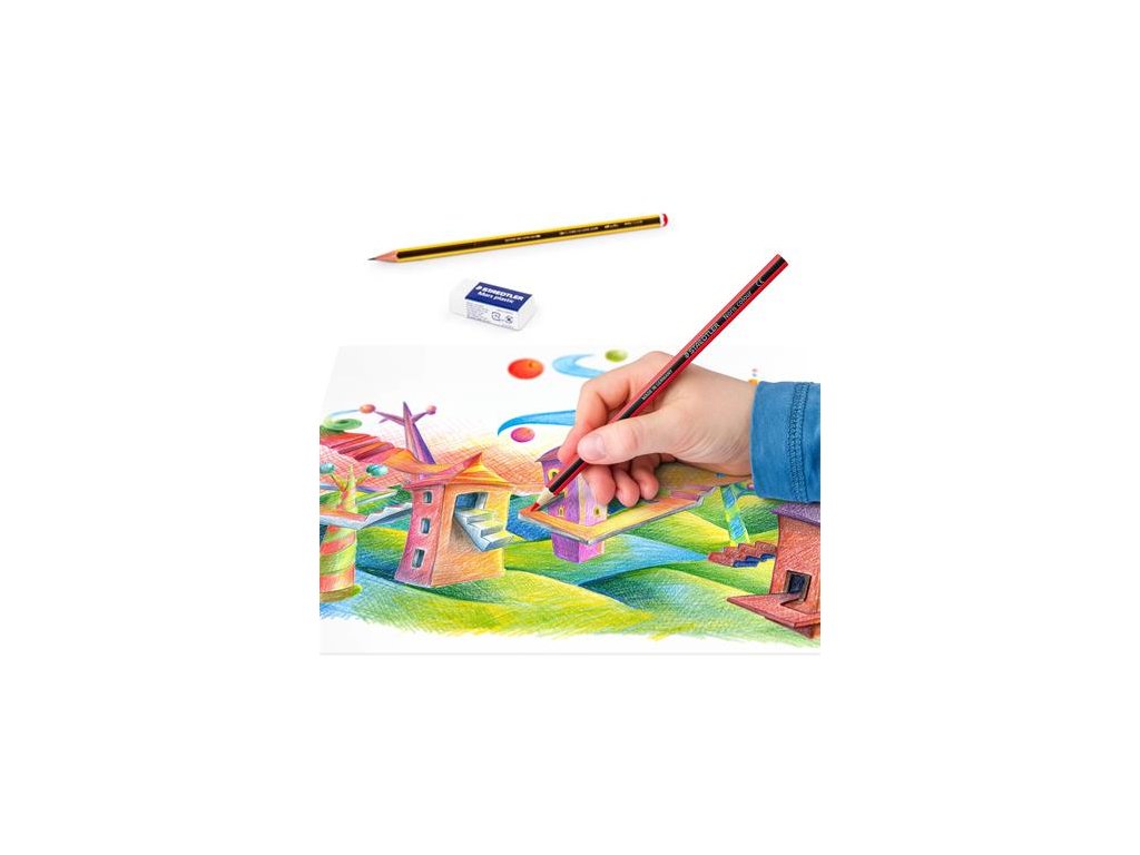 Farebné ceruzky, sada, šesťhranné, darček: grafitová ceruzka a guma, STAEDTLER "Noris Club", 12 rôznych farieb
