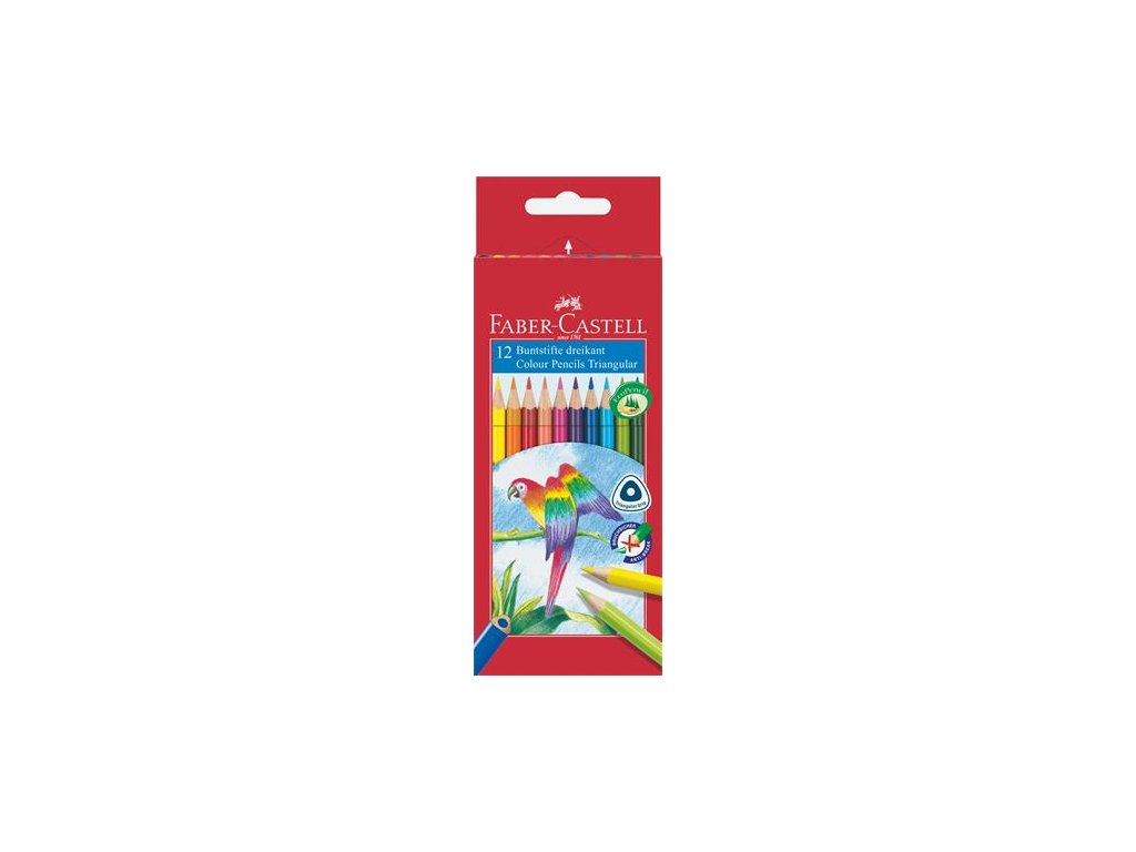 Farebné ceruzky, sada, trojhranný tvar, FABER-CASTELL "Papagáj", 12 rôznych farieb
