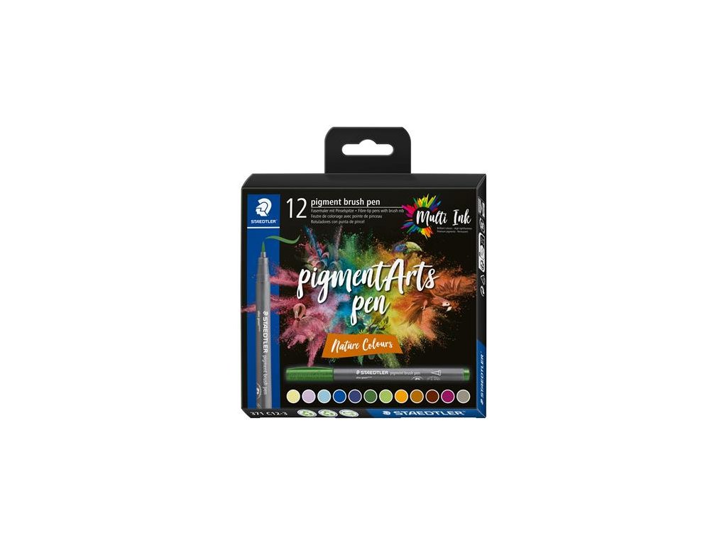 Fixka v tvare štetca, sada, STAEDTLER "Pigment brush 371", 12 rôznych prírodných farieb