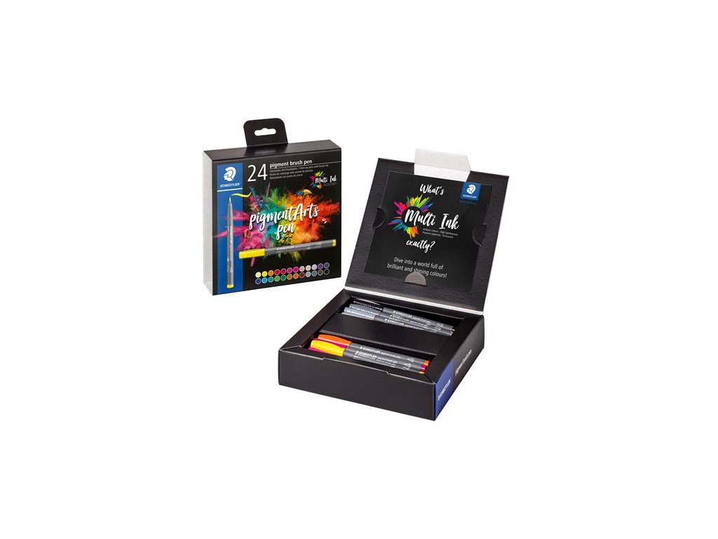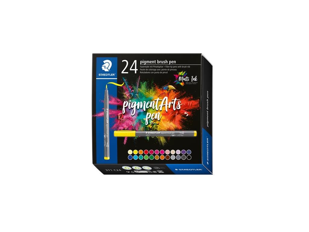 Fixka v tvare štetca, sada, STAEDTLER "Pigment brush 371", 24 rôznych farieb