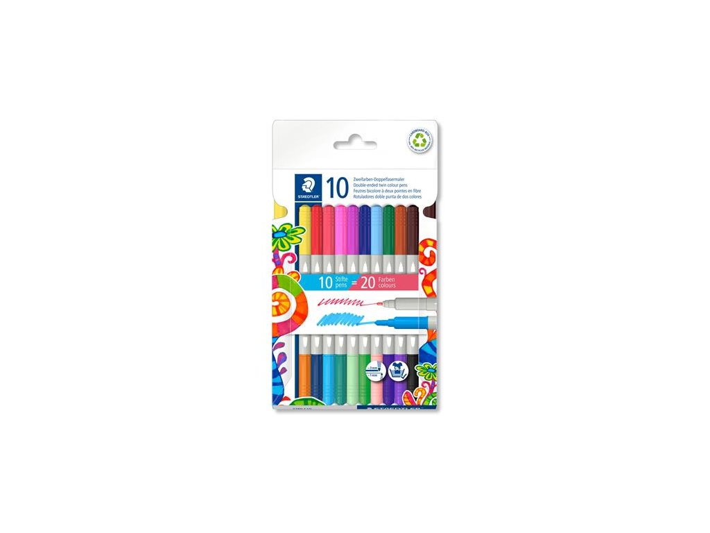 obojstranné fixky pre nakreslenie tenších a hrubších čiar ideálne na kreslenie, písanie, maľovanie živé farby z väčšiny textílií vyprateľné PP telo pera hrúbka písma: 1 mm a 3 mm 20 rôznych farieb Značka: STAEDTLER Výrobca: STAEDTLER SE Adresa: Moosäckerstr. 3 , 90427 Nuremberg, Germany Web: http://www.staedtler.com Email: https://www.staedtler.com/intl/en/service/contact/Dodatočné parametre