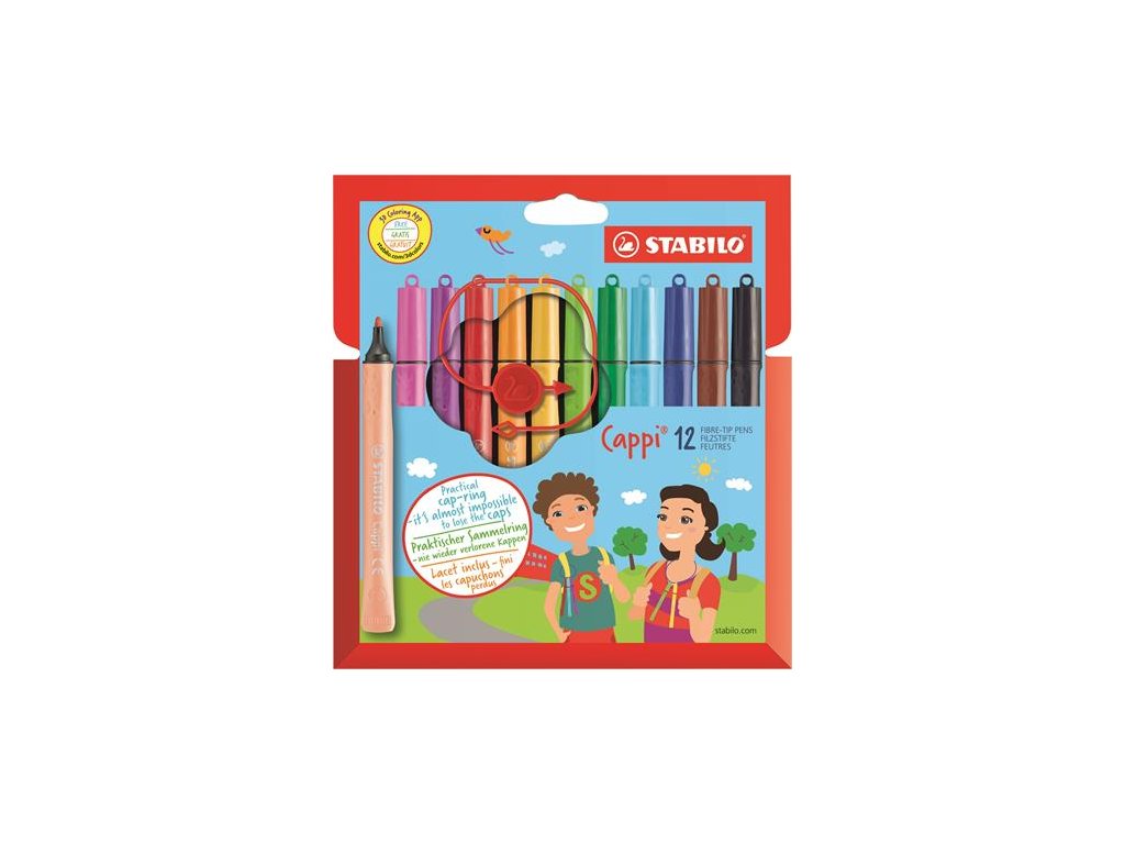 Fixky 1 mm, STABILO "Cappi", 12 rôznych farieb