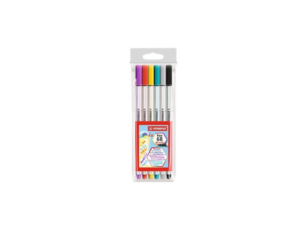 Fixky v tvare štetca, STABILO "Pen 68 brush", 6 farieb