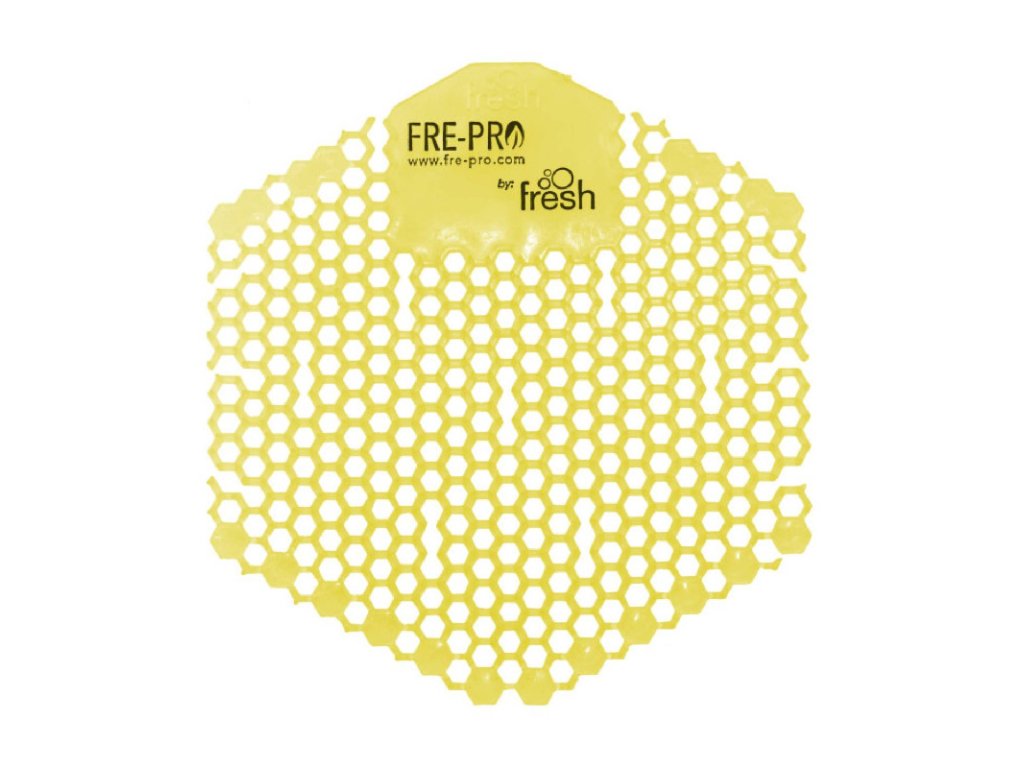 FRE-PRO Wave 3D - vonné sitko do pisoára Citrus 1 ks Vonné gelové sítko do pisoáru Wave 3D s vôňou patrí do rady produktov FRE PRO. Svieže tóny citrusových plodov a verbeny v spojení so sladkým nádychom vône čerstvých nektáriniek, kumarínu a vanilky. Tradičná ovocno kvetinová kompozícia s revitalizačnými účinkami, vhodná pre každý interiér. Použitie: Obojstranné použitie do pisoárov sprchových kútov, umývadiel Špecifikácie: vonia a osviežuje vzduch po dobu 30 dní unikátný šesťuholníkový tvar, so špeciálne riešenými otvormi a ihličkami umožňuje náhľad do odpadu zabraňuje rozstrekovaní moču a prípadnému návratu nečistôt späť do misy obmedzuje vznik zápachu v samotnom jeho zárodku: zápach neprekrýva, ale uvoľňuje baktérie a aktívne ingrediencie optimalizované pre likvidáciu pachov čas upratovania sa skracuje na polovicu možnosť nastavenia dátumu výmeny po 30 dňoch používania vyhovuje testom VOC v USA aj v Európe - ekologicky priaznivý produkt vhodné pre bežné aj pre suché pisoáry Cena je za 1ksDodatočné parametre