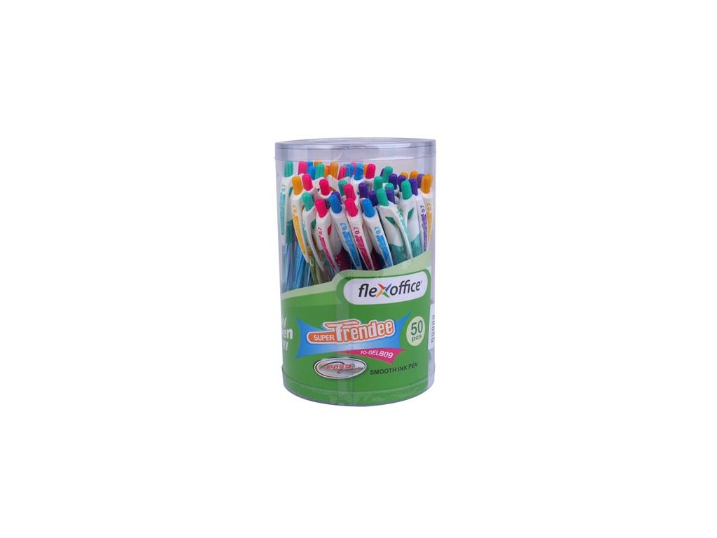 50 ks gélových pier s 5 rôznymi plastovými telami: fialová, žltá, ružová, bledomodrá, zelená modrý atrament hrúbka písma: 0,35 mm priemer guľôčky: 0,7 mm Značka: FLEXOFFICE Výrobca: Ofis konsumativi ltd. Adresa: 4000 Plovdiv Bulgaria, 6A Kuklensko shose blv Web: www.okoffice.bg Email: zaprianov@okoffice.bgDodatočné parametre
