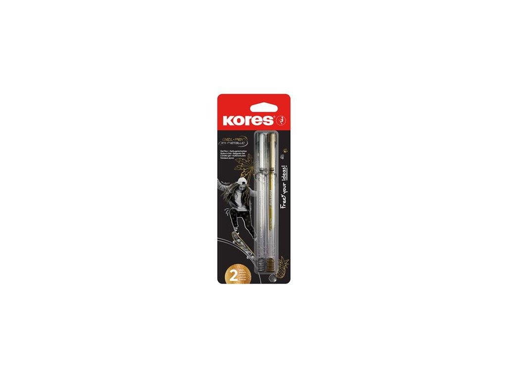 Gélové pero, sada, 1,0 mm, s vrchnákom, trojhranné, KORES "K11", zlaté/strieborné