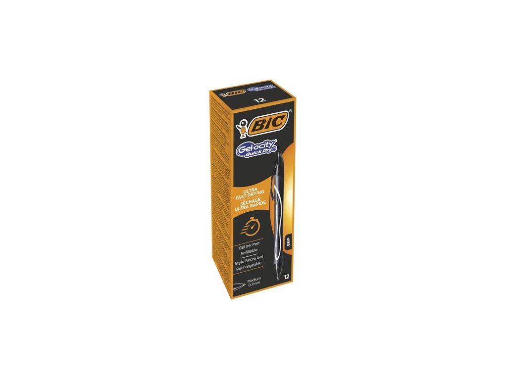 Ultra rýchlo schnúce gélové guľôčkové pero v modernom dizajne. Pogumované telo pre pohodlné uchytenie, atrament pre hladké písanie. Guľôčka 0,7 mm, šírka stopy 0,3 mm. Väčšie balenie pier 12 ks v jednej farbe. Farba tela čierna. Náhradná náplň čierna obj. kód BC967263.Farba: čierna