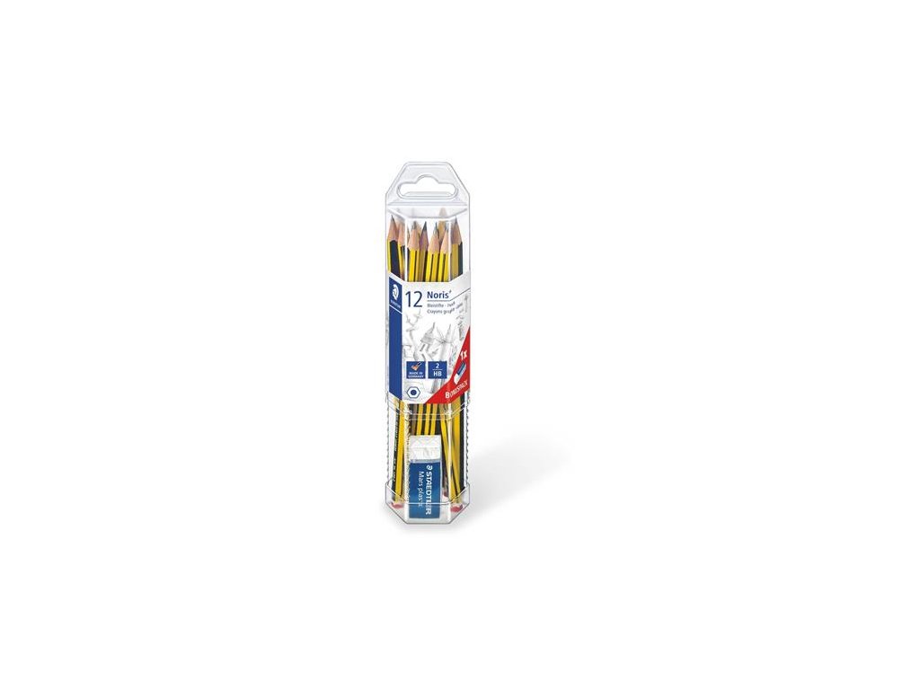 Grafitová ceruzka, sada, darček: guma, HB, šesťhranná, STAEDTLER "Noris"