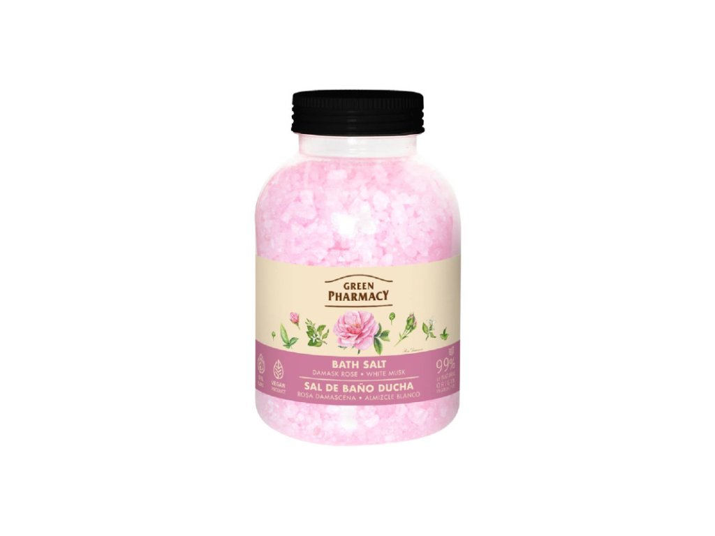 Green Pharmacy Soľ do kúpeľa 1000 g - Damašská ruža a biele pižmo Soľ je bohatá na vitamíny a stopové prvky, ktoré zlepšujú metabolické procesy, zvyšujú elasticitu pokožky a bojujú proti celulitíde. Produkt dodá príjemnú sviežosť, zamatový pocit a zanechá pokožku ľahkú s jemnou vôňou. Extrakt z damašskej ruže zvyšuje elasticitu pokožky a má tonizujúci účinok. Esenciálny olej z bieleho pižma upokojuje a uvoľňuje napäté nervy, znižuje pocit stresu a dopraje telu potrebnú aromaterapiu. Použitie: Rozpustite 100-150 g soli vo vani s teplou vodou. Po 15-20 minútach kúpania, opláchnite pokožku teplou vodou. Objem: 1000g Cena je za bal./1000gDodatočné parametre