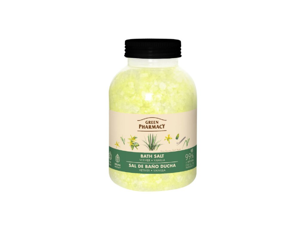 Green Pharmacy Soľ do kúpeľa 1000 g - Dlhá tropická tráva Vetiver a vanilka Soľ je bohatá na vitamíny a stopové prvky, ktoré zlepšujú metabolické procesy, zvyšujú elasticitu pokožky a bojujú proti celulitíde. Produkt dodá príjemnú sviežosť, zamatový pocit a zanechá pokožku ľahkú s jemnou vôňou. Esenciálny olej z dlhej tropickej trávy – vetiver, má upokojujúci, posilňujúci účinok na nervový systém a psychiku, zmierňuje nespavosť, depresie a neurózy. Navodzuje optimizmus a zvyšuje zmyselnosť. Esenciálny olej z vanilky upokojuje a uvoľňuje napäté nervy, zlepšuje pamäť, podporuje koncentráciu a pôsobí ako antidepresívum. Použitie: Rozpustite 100-150 g soli vo vani s teplou vodou. Po 15-20 minútach kúpania, opláchnite pokožku teplou vodou. Objem: 1000g Cena je za bal./1000gDodatočné parametre
