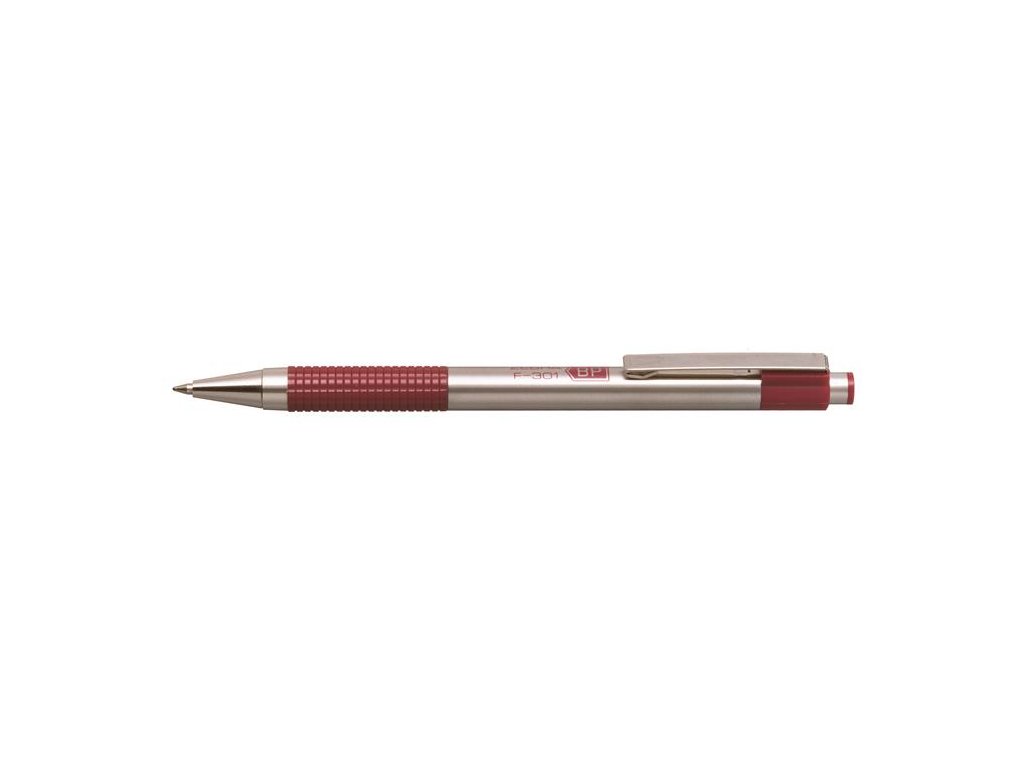 Telo guľôčkového pera F-301 vyrobené z nehrdzavejúcej ocele je zárukou štýlovosti a trvanlivosti. Vrúbkovaný úchop zaručuje pohodlné a stabilné písanie. Farba tela je bordová, farba atramentu modrá. Priemer guľôčky: 0,7 mm, hrúbka písma: 0,24 mm. Typ náplne: F.Dodatočné parametre