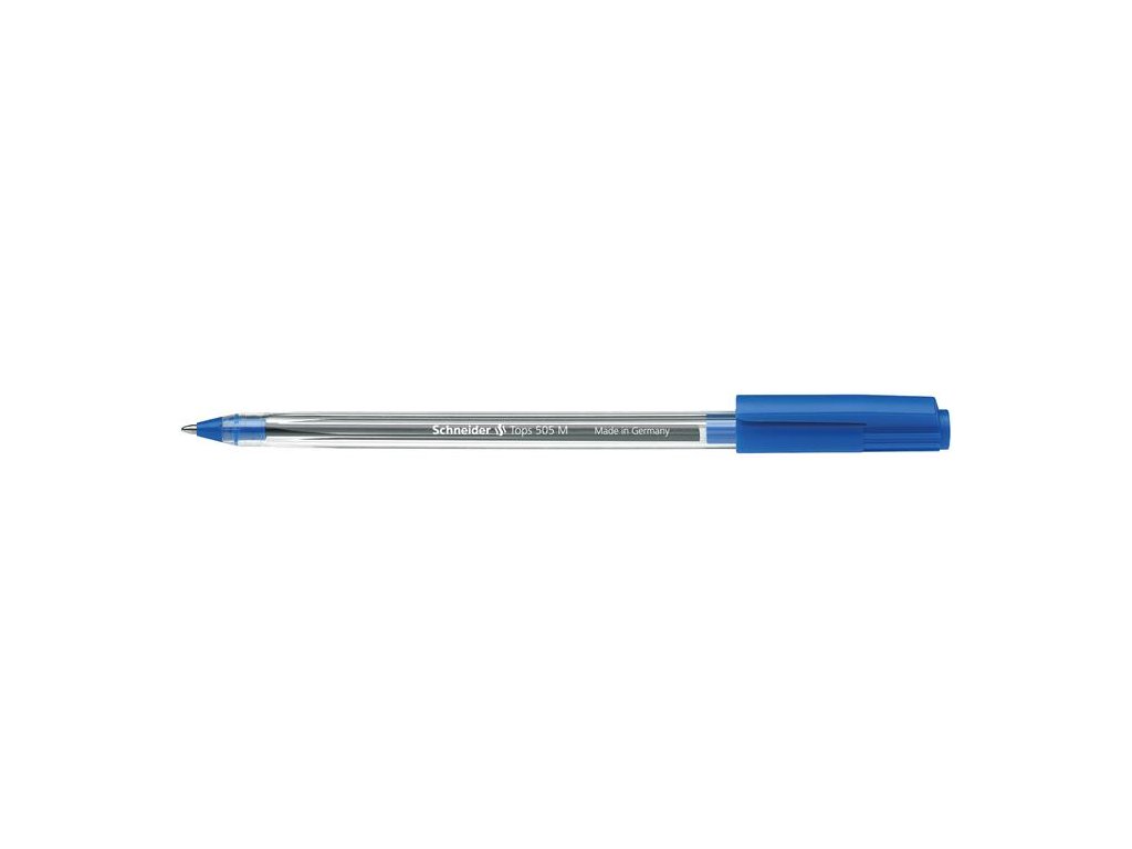 Guľôčkové pero, 0,5 mm, s vrchnákom, SCHNEIDER "Tops 505 M", modré
