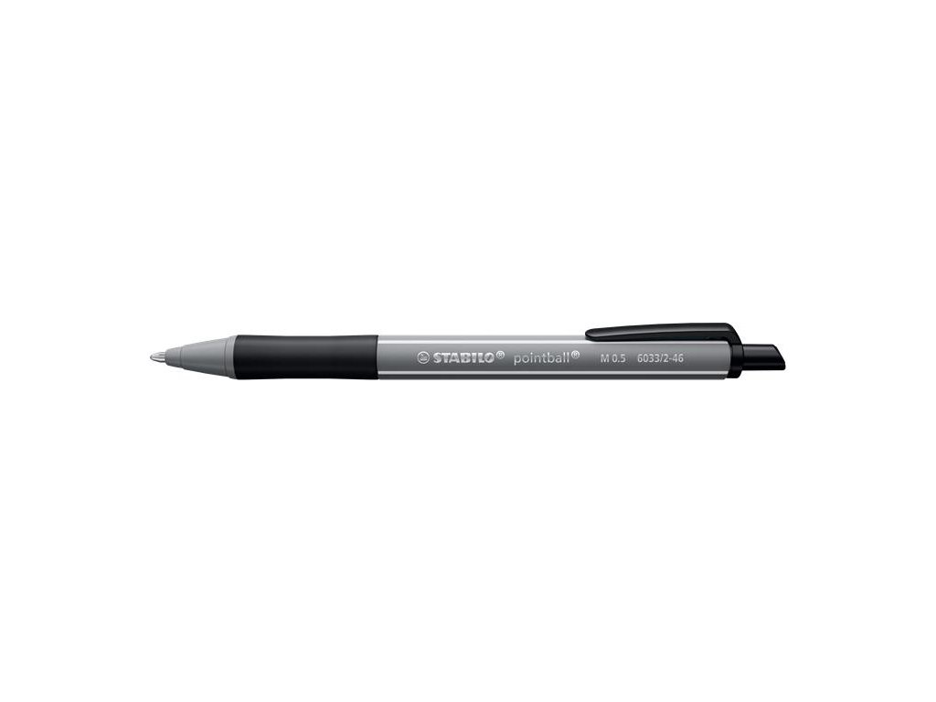 Guľôčkové pero, 0,5 mm, stláčací mechanizmus, STABILO "Pointball Colorful", tmavosivé