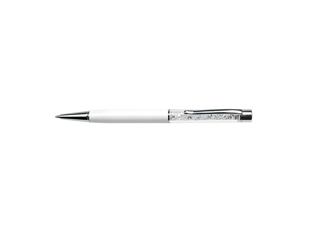 Guľôčkové pero, s bielym krištáľom SWAROVSKI®, 14 cm, ART CRYSTELLA, krémovo biela