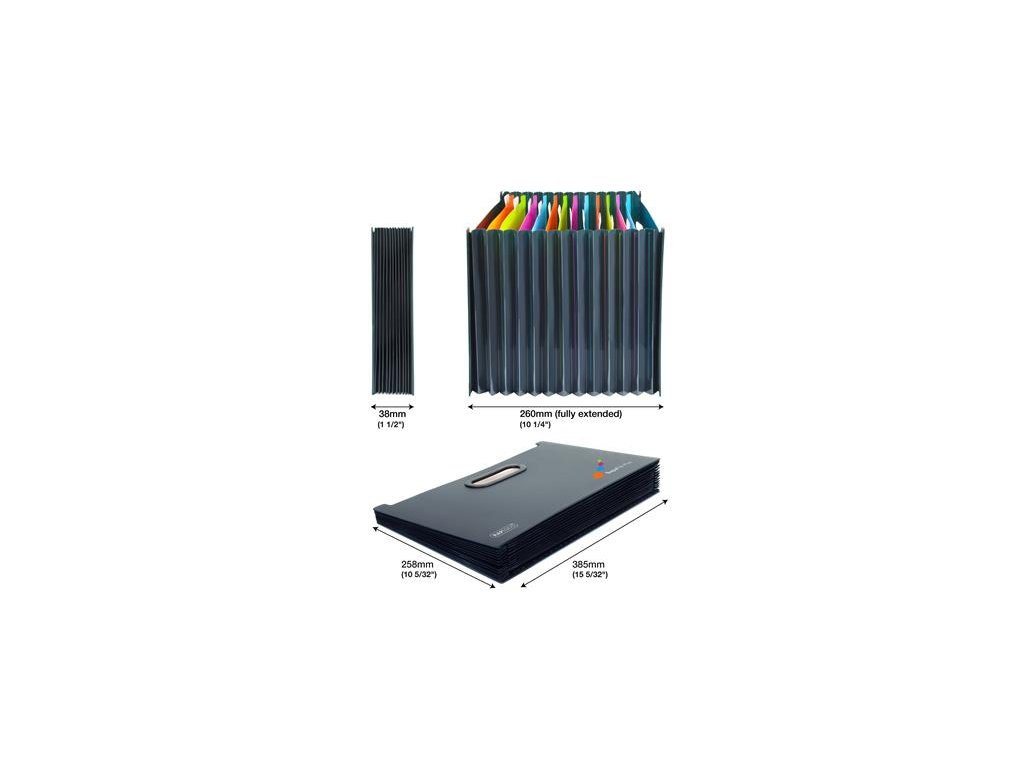 - 13 priehradiek na dokumenty formátu A4+ - kapacita: 115 listov/priehradka (pri 80g papiere) - popisovateľné priehradky a vizitkár - pevné a odolné rukoväte pre ľahkú prepravu rozmery: 329 mm x 260 mm (v úplne otvorenom stave) x 235 mm Značka: RAPESCO Výrobca: Rapesco-Tacwise BV Adresa: Kraijenhoffstraat, 137A, 1018RG Amsterdam, Netherlands Web: www.rapesco.com Email: support@rapesco-tacwise.nlDodatočné parametre