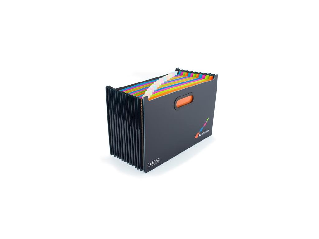 Harmonikový odkladač, A4+, PP, 13 priehradiek, RAPESCO "SupaFile Plus", čierny