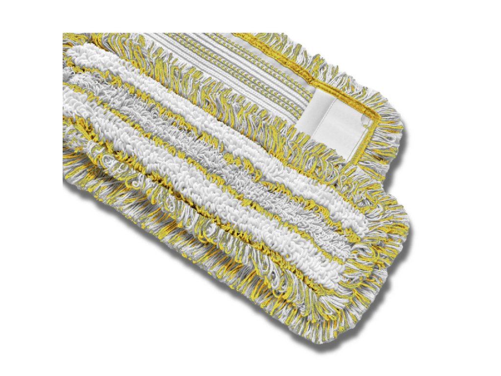 Hospitalmopp EVO7 žltý 40 cm Hospitalmopp EVO7 je vyrobený zo zmesi mikrovlákna a bavlny. Táto kombinácia vlákien vytvára mop s vynikajúcimi kĺzavými vlastnosťami a zároveň oveľa vyššou absorpciou nečistôt ako bežné bavlnené mopy. Farebné označenie je dané farbenými priadzami. Kapsa mopu je vyrobená z robustného polyesterového vlákna. Slučka zvnútra, strapce zvonka. Mop je možné prať pre 60 – 95 °C a je vhodný na sušenie v sušičke. Hospitalmopp sa používa na vytieranie podláh v nemocniciach, domovy dôchodcov, zdravotníctvo. Parametre: Rozmery: 40 cm Materiál: zmes mikrovlákna a bavlny Farba: žltá Uchytenie: KAPSA Cena je za 1 ksDodatočné parametre