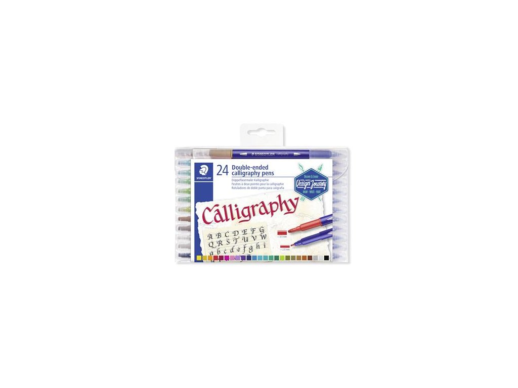 24 farieb obojstranný kaligrafický popisovač ideálny na dekoráciu hrúbka písma: 3,5 mm a 2 mm Značka: STAEDTLER Výrobca: STAEDTLER SE Adresa: Moosäckerstr. 3 , 90427 Nuremberg, Germany Web: http://www.staedtler.com Email: https://www.staedtler.com/intl/en/service/contact/Dodatočné parametre