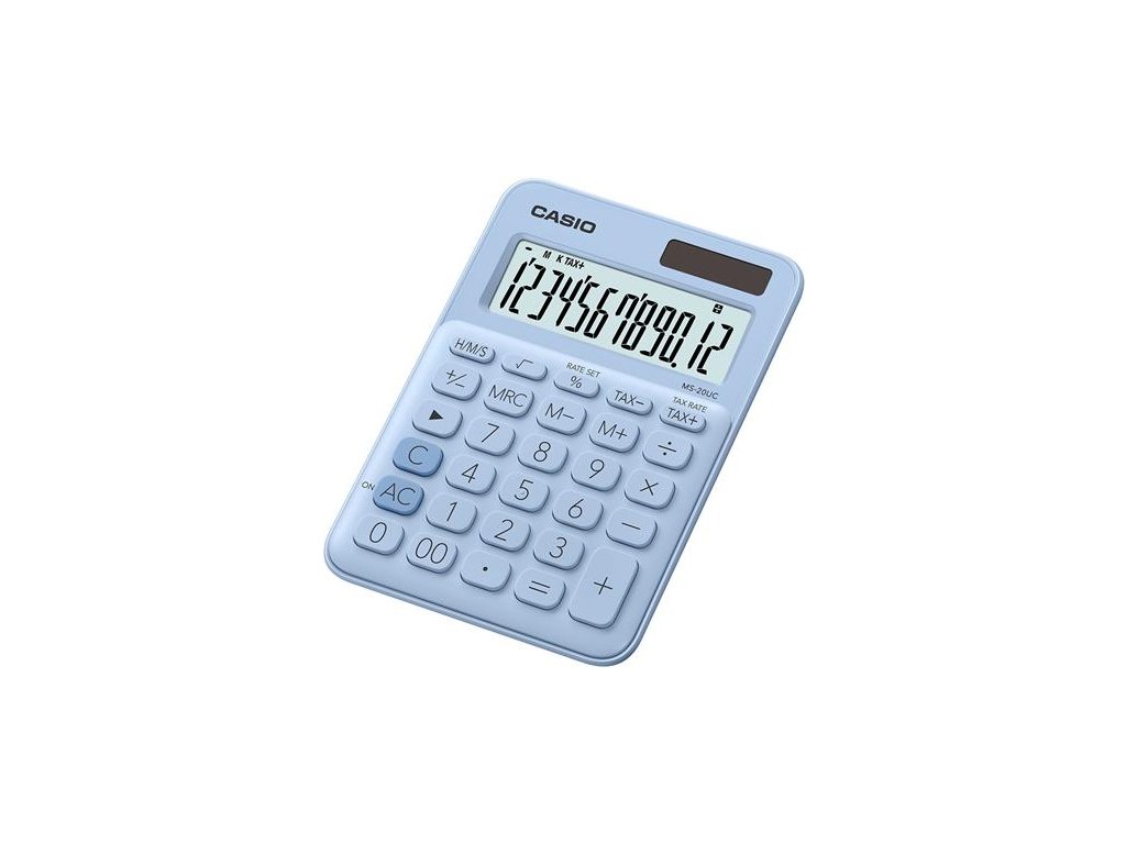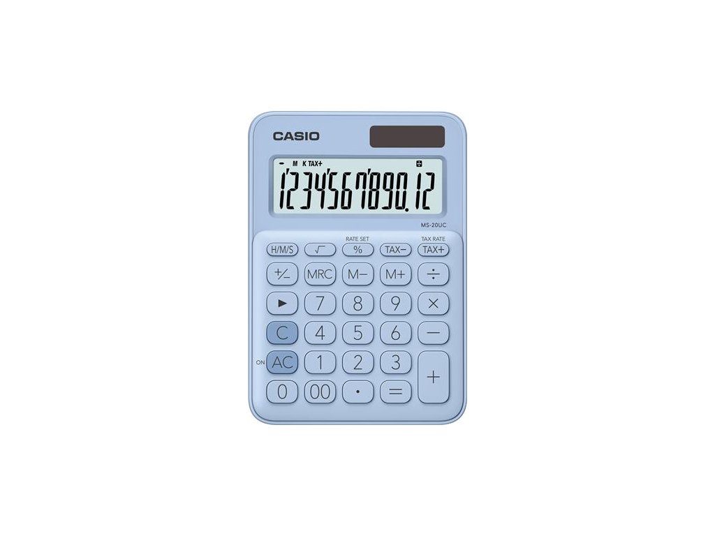Kalkulačka, stolová, 12-miestna, CASIO "MS 20UC", svetlomodrá