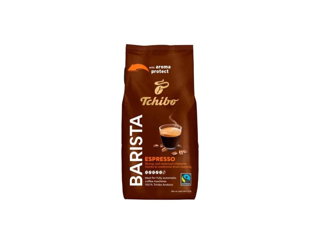 Tchibo Barista espresso sa vyrába z kávových plodov, ktoré pochádzajú zo zodpovednej poľnohospodárskej produkcie a sú zošľachťované pomalým pražením v bubnovej pražičke. Má jemný základ s nežnými tónmi horkej čokolády a orieškovým akcentom. Najnovšie je so špeciálnym uzáverom na zachovanie čerstvej arómy, ideálne dávkovanie a jednoduché opätovné uzavretie obalu.100 % Tchibo Arabica vhodná do plnoautomatických kávovarov.