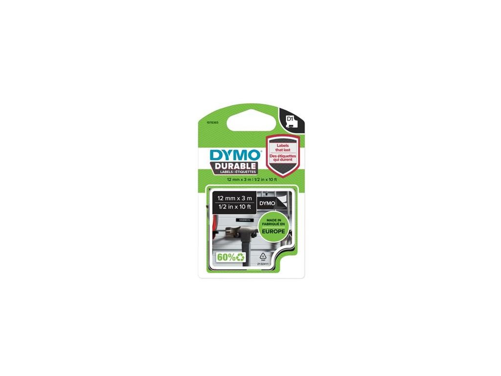 Kazeta k štítkovačom, 12 mm x 3 m, odolná, DYMO "D1", čierno-biela