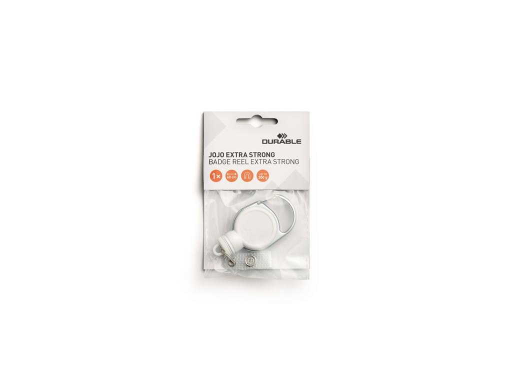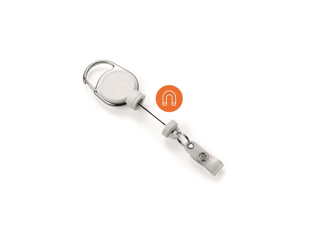 Klip s navíjacou šnúrou a karabínou, DURABLE "Extra strong", biela