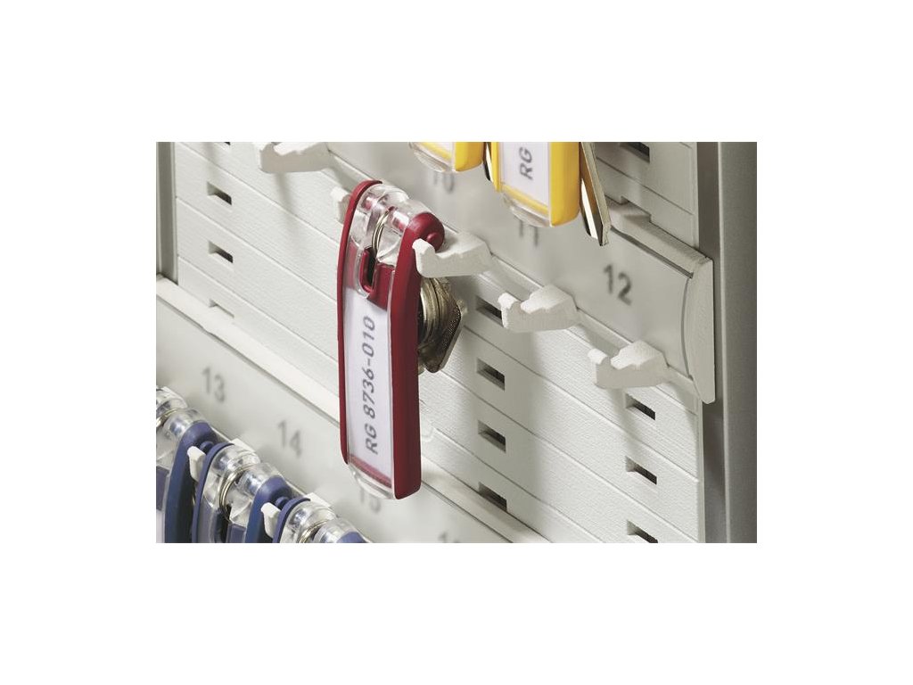 Tento jedinečný plastový prívesok na kľúče umožňuje dokonalý prehľad o kľúčoch v skrinke vďaka tomu, že kľúče sú na plocho uložené za kľúčenkou a popisovacie štítky sú tak kedykoľvek čitateľné. Kľúčenka je speciálne designovaná, aby bola zavesená na háčikoch a špeciálnych koľajniciach, jedine táto kombinácia zabezpečí, že kľúčenka visí nehybne na svojom mieste. Pre vloženie popisovacieho štítku možno klip ľahko otvoriť bez nutnosti zbavenia sa závesného krúžku. Na uľahčenie popisu slúži bezplatný softvér na www.durable.de. KEY CLIP - Kľúčenka je v ponuke v štyroch atraktívnych farbách (žltá, červená, modrá a čierna) - farbu nie je možné vybrať.Dodatočné parametre