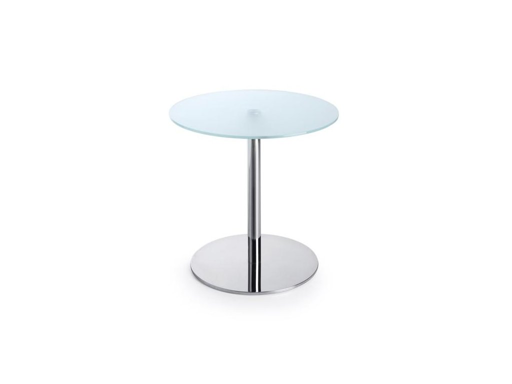 Okrúhlý stolík SR 30, priemer 60 cm, výška 60 cm, tvrdené mliečne sklo, kovová podnož chróm