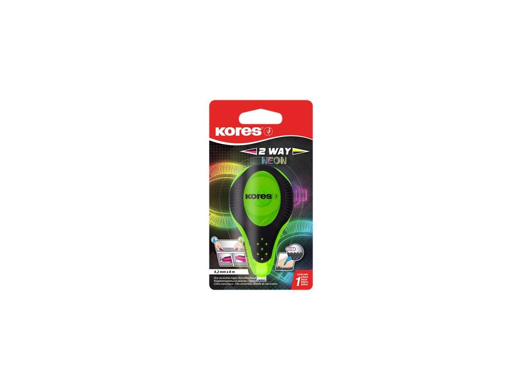 Korekčný roller, 4,2 mm x 8 m, KORES "2WAY Neon", rôzne farby