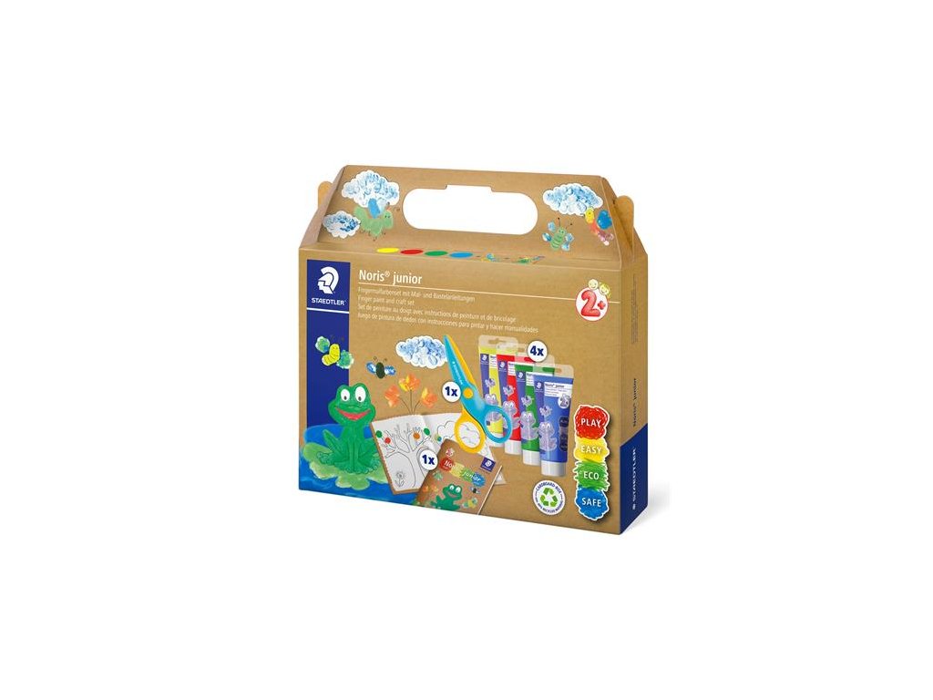 Noris® junior - Produkty, ktoré rastú s dieťaťom. Noris junior podporuje deti v rozvoji ich plného potenciálu podľa ich veku a potrieb. Učí tých najmenších pri hre, pričom je šetrné k životnému prostrediu a ich používanie je bezpečné. - hravá a zároveň rozvíjajúca súprava s prstovými farbami a remeselnými nápadmi pre malé deti - živé farby odolné voči svetlu, ktoré sa ľahko miešajú a rýchlo schnú - farba je dermatologicky testovaná - v prenosnej kartónovej krabici - odporúčaný vek dieťaťa: od 2 rokov Sada obsahuje: - 4 prstové farby (4x75 ml, v rôznych farbách) - 1 bezpečnostné nožnice - 1 zošit na kreslenie Značka: STAEDTLER Výrobca: STAEDTLER SE Adresa: Moosäckerstr. 3 , 90427 Nuremberg, Germany Web: http://www.staedtler.com Email: https://www.staedtler.com/intl/en/service/contact/Dodatočné parametre