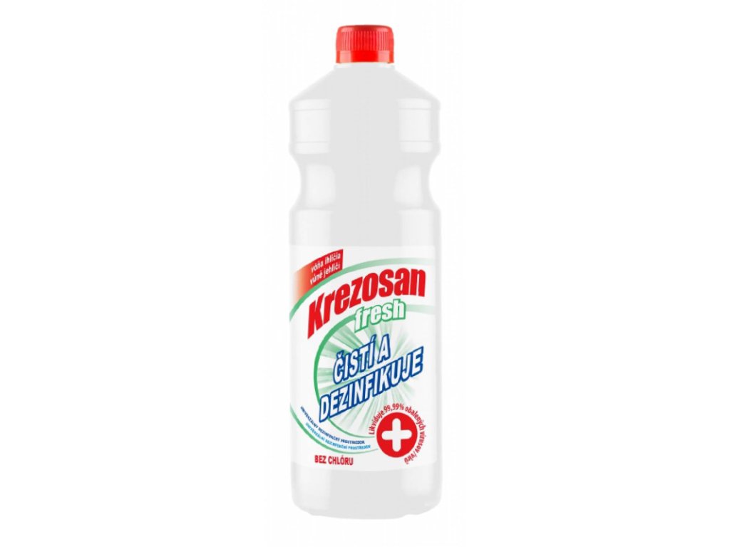 Krezosan fresh je tekutý, čistiaci a dezinfekčný prípravok na podlahy, hygienické zariadenia, kúpeľne a chodby. Biocídny prípravok: Likviduje baktérie, spóry a vírusy. Obsahuje: didecyl (dimetyl) amónium-chloridy; C12-16-alkylalkoholy,etoxylované. Účinná látka: didecyl (dimetyl) amónium-chloridy 48250mg/kg Upozornenie: Používajte biocídny prípravok bezpečne. Pred použitím si prečítajte návod na použitie. Dráždi kožu. Spôsobuje vážne poškodenie očí. Veľmi toxický pre vodné organizmy. Uchovávajte mimo dosahu detí. Zabráňte uvoľneniu do životného prostredia. Noste ochranné rukavice a ochranné okuliare. Zozbierajte uniknutý produkt. Návod na použitie: Zriedený prípravok Krezosan fresh naneste na znečistenú plochu, nechajte pôsobiť a potom dôkladne opláchnite čistou vodou. Po práci s prípravkom si dôkladne umyte ruky mydlom a ošetrite krémom na ruky. Riedenie: 1 objemový diel prípravku na 9 objemových dielov vody. Pred použitím prípravok pretrepať. Krezosan má trojitý účinok: Bakterocídny (doba pôsobenia 30minút) Sporocídny (doba pôsobenia 60minút) Virucídny podľa ČSN EN13610 (doba pôsobenia 30minút) Spotrebujte do 24 mesiacov od dátumy výroby. Výrobná šarža je dátum výroby. Objem: 950 ml Cena je za 1ks/950mlDodatočné parametre