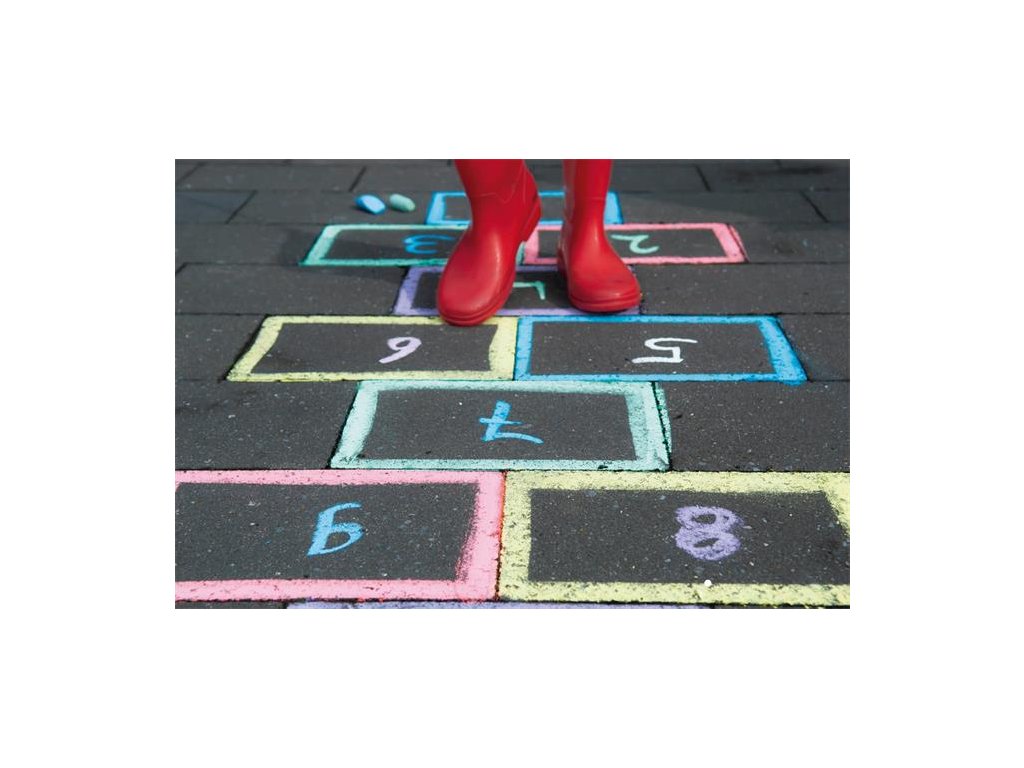 vhodné na asfalt a chodníky môže sa ňou kresliť na: drevo, tabuľu, asfalt dokonale krycie, jasné farby veľkosť jumbo, okrúhle telo ľahký úchyt 6 rôznych farieb: žltá, zelená, červená, modrá, oranžová a fialová dĺžka kriedy: 105 mm a priemer 25 mmDodatočné parametre