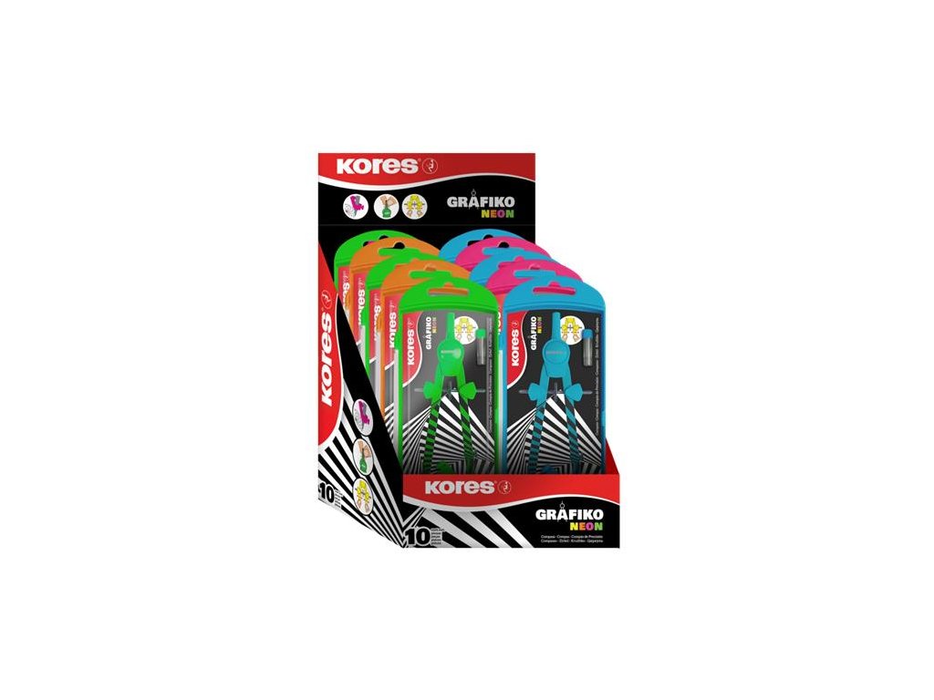 Kružidlo, sada, precízne, 3-kusové, KORES "Grafiko Neon", mix farieb