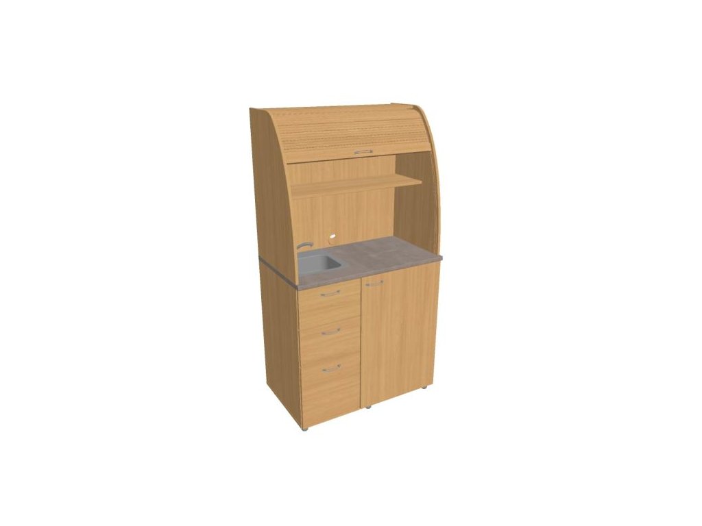 • Dve police vo vrchnej časti kuchynky poskytujú dostatočnú kapacitu na poháre, šálky a taniere. Na pracovnú dosku môžete umiestniť napr. kávovar a káblovou priechodkou v zadnej časti vyvediete kábel z priestoru kuchynky.