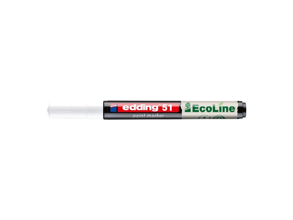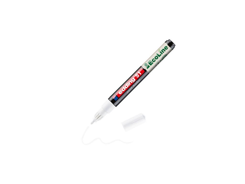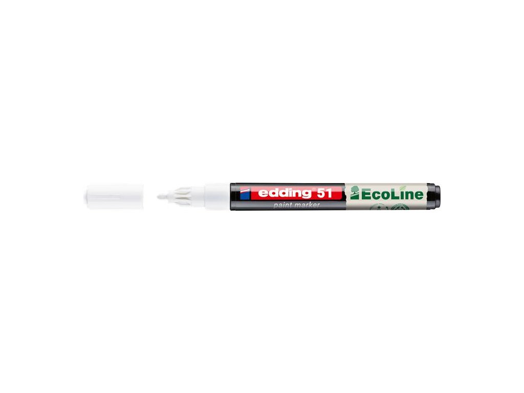 Profesionálna kvalita lakového popisovača na veľmi krycie a trvácne značenie a označovanie na tmavých, priehľadných a hladkých materiáloch, ako sú sklo, kov a plast. – najmenej 80 % plastu pochádza z recyklovaného materiálu po spotrebe – zaoblený hrot – hrúbka čiary 1–2 mm – atrament je svetlostály, rýchloschnúci a vodeodolný – možné doplniť atramentom edding LT25 – dostupné náhradné hroty (edding 51 náhradné hroty) – bez zápachu, bez pridania toluénu a xylénu – odolný voči času, vhodný na vnútorné i vonkajšie použitie – viditeľné značenie aj pri nepriaznivých svetelných podmienkach – ľahko rozpoznateľný – ekologický dizajn produktu – nízky obsah VOC – uzáver možno nasadiť na koniec popisovača, čím sa zabráni jeho strate – široká ponuka žiarivých farieb – skladujte vodorovne
