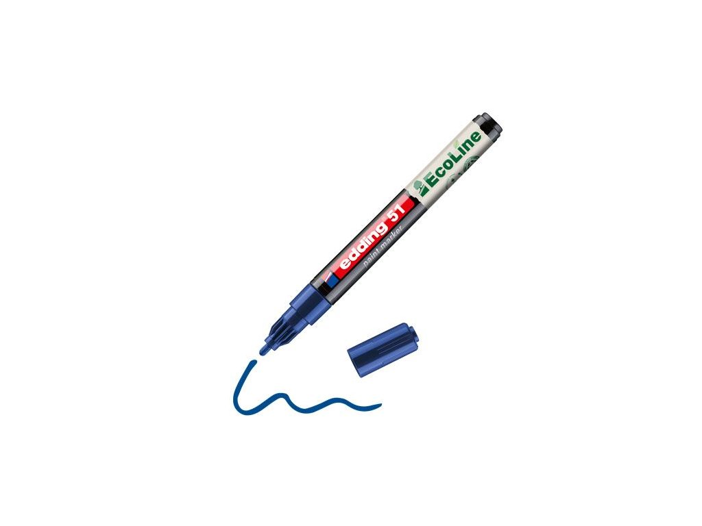 Profesionálna kvalita lakového popisovača na veľmi krycie a trvácne značenie a označovanie na tmavých, priehľadných a hladkých materiáloch, ako sú sklo, kov a plast. – najmenej 80 % plastu pochádza z recyklovaného materiálu po spotrebe – zaoblený hrot – hrúbka čiary 1–2 mm – atrament je svetlostály, rýchloschnúci a vodeodolný – možné doplniť atramentom edding LT25 – dostupné náhradné hroty (edding 51 náhradné hroty) – bez zápachu, bez pridaného toluénu a xylénu – odolný voči času, vhodný na vnútorné i vonkajšie použitie – viditeľné značenie aj pri nepriaznivých svetelných podmienkach – ľahko rozpoznateľný – ekologický dizajn produktu – nízky obsah VOC – uzáver možno nasadiť na koniec popisovača, čím sa zabráni jeho strate – široká ponuka žiarivých farieb – skladujte vodorovne