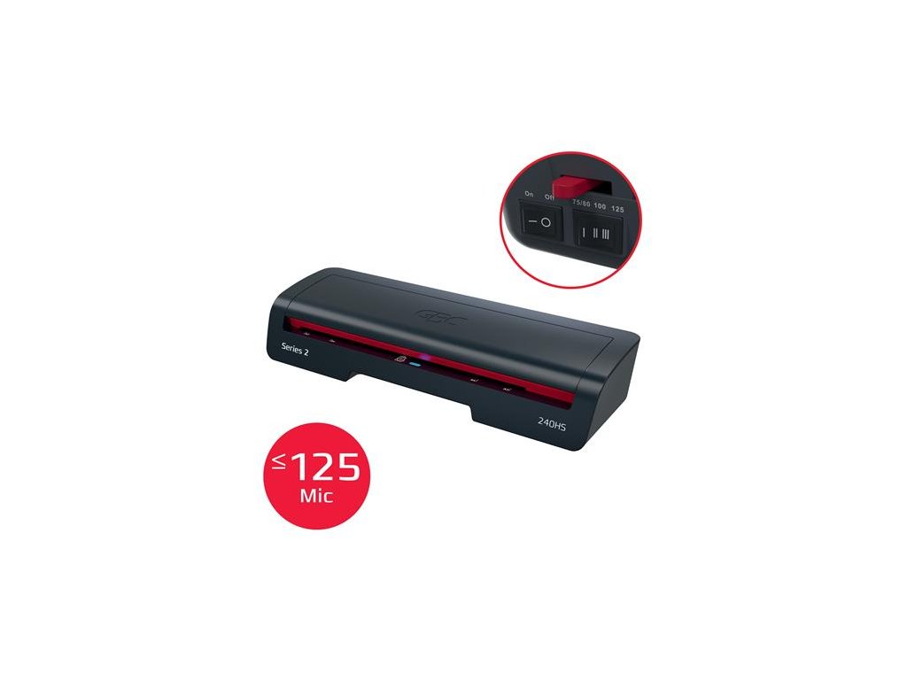 GBC 240HS je elegantné a efektívne riešenie pre každodenné laminovacie potreby. Vysokorýchlostný laminovač formátu A3 navrhnutý so zreteľom na štýl a výkon je ideálny pre domáce alebo domáce kancelárske použitie. Chráňte a uchovajte svoje dôležité dokumenty vždy v dokonalom prevedení.