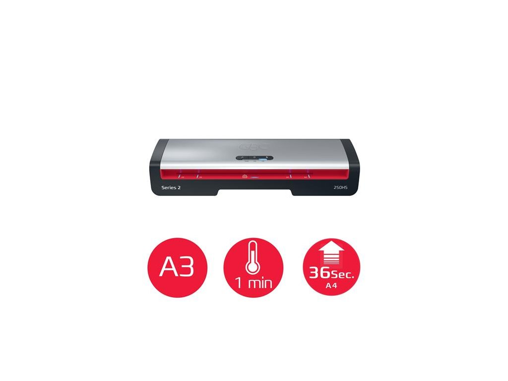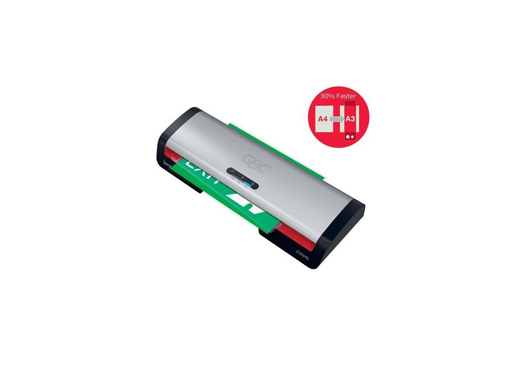 GBC 250HS A3 laminovací stroj poskytuje spoľahlivé a efektívne riešenie pre každodenné kancelárske laminovacie potreby. Laminovač navrhnutý pre profesionálne prostredie kombinuje vynikajúci výkon s ľahkou obsluhou. Chráňte a uchovajte svoje dôležité dokumenty rýchlo a zakaždým s hladkým, profesionálnym prevedením.
