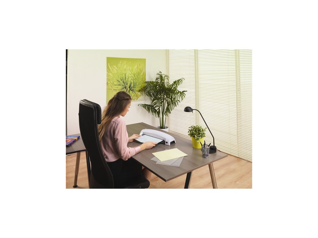 - Laminátor vhodný do domácnosti na príležitostné aj každodenné použitie - Laminovateľná hrúbka fólie: 80 až 125 mikrónov lam. fólie za tepla - Technológia „100% bez zaseknutia“: pri použití laminátu Fellowes je laminátor 100% bez zaseknutia - Laminovacia šírka: 320 mm (A3) - Počet valcov: 2 ks - Čas zahrievania: 6 minút - Poskytuje svetelný signál, keď je laminátor pripravený na použitie - Rýchlosť laminovania: 30 cm / min - Používateľské rozhranie: LED displej - Rozmery výrobku (výška x šírka x hĺbka): 82 x 150 x 486 mm - Hmotnosť produktu: 1,58 kg - 1 ročná zárukaDodatočné parametre