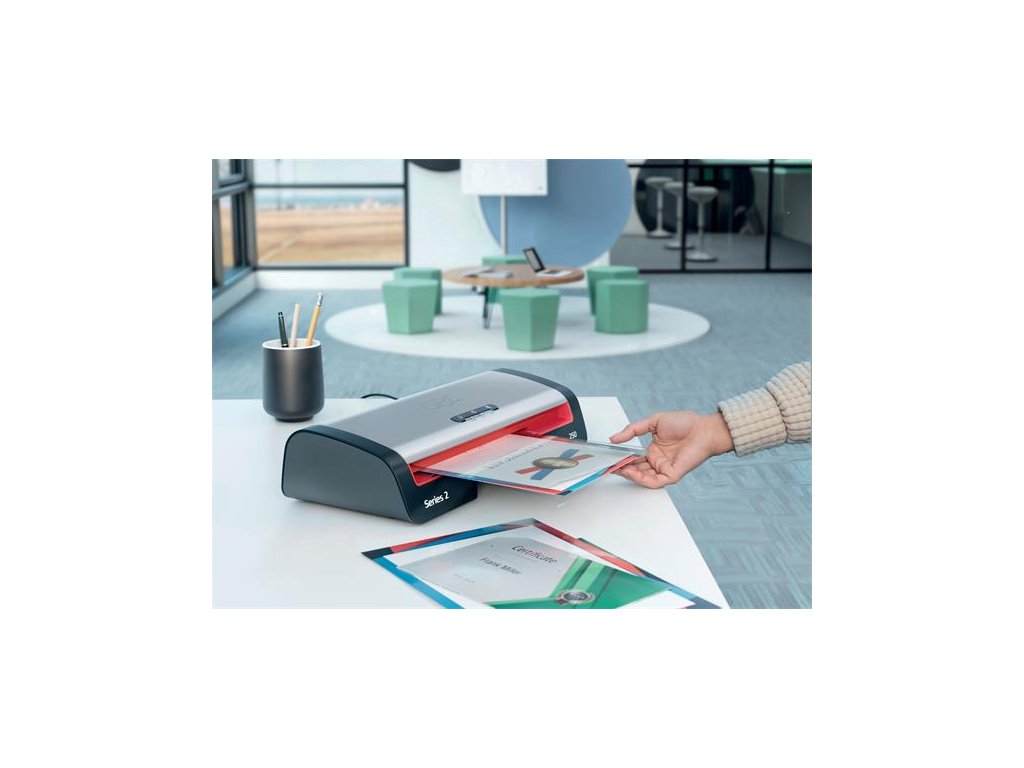 - laminuje 1 A4 stránku za 36 sekúnd (s laminovacou fóliou 75 mikrónov)