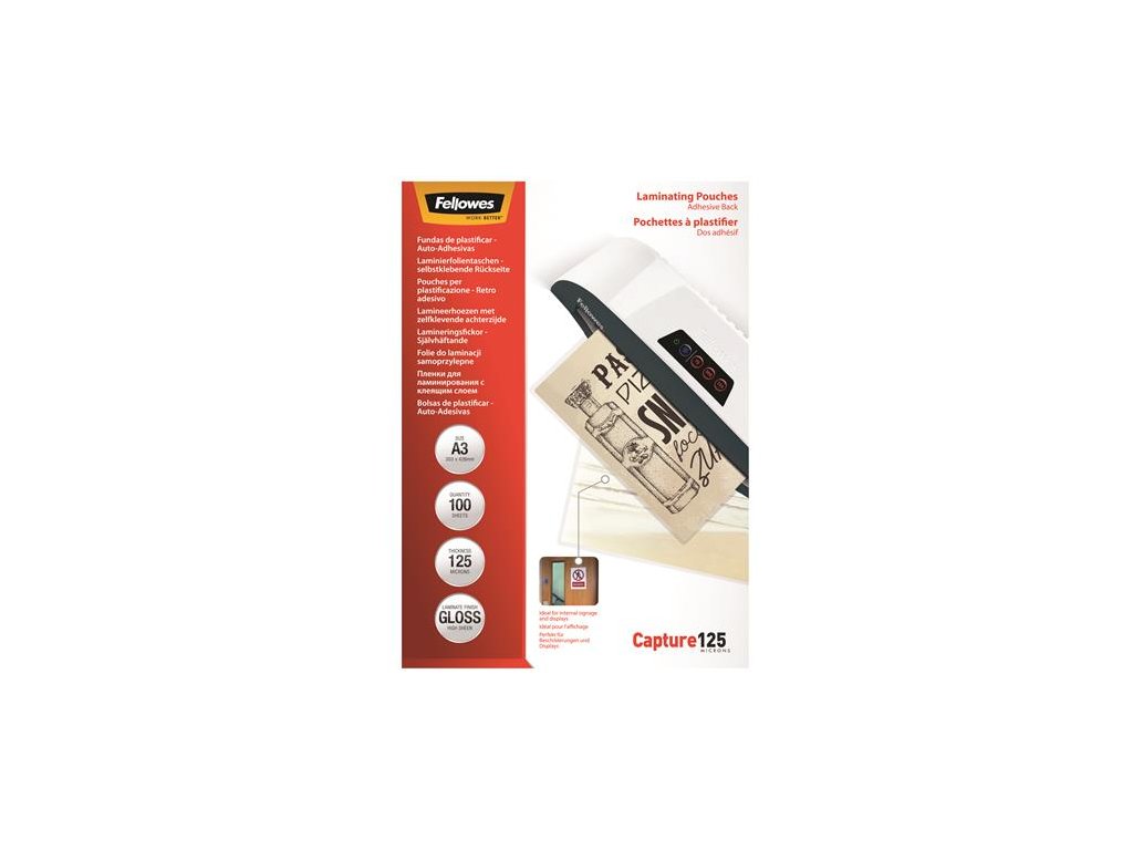 Laminovacia fólia, 125 mikr., A3, lesklá, samolepiaca, 100 ks, FELLOWES