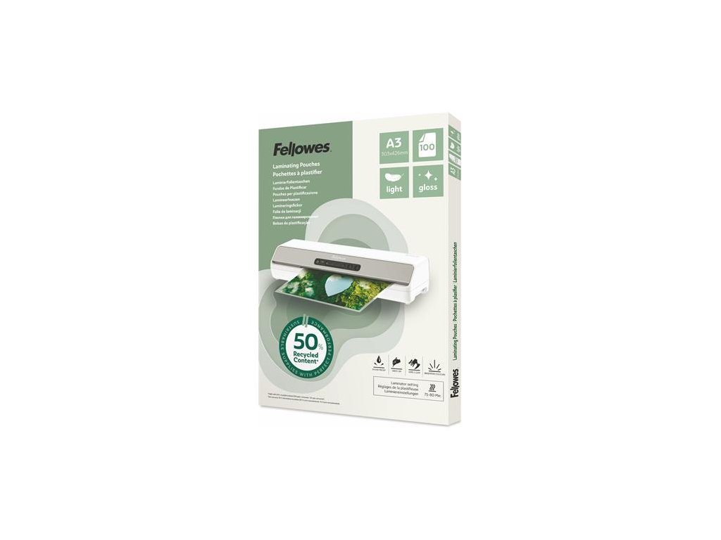 Laminovacia fólia, 80 mikr., A3, lesklá, 100 ks, FELLOWES "Light"