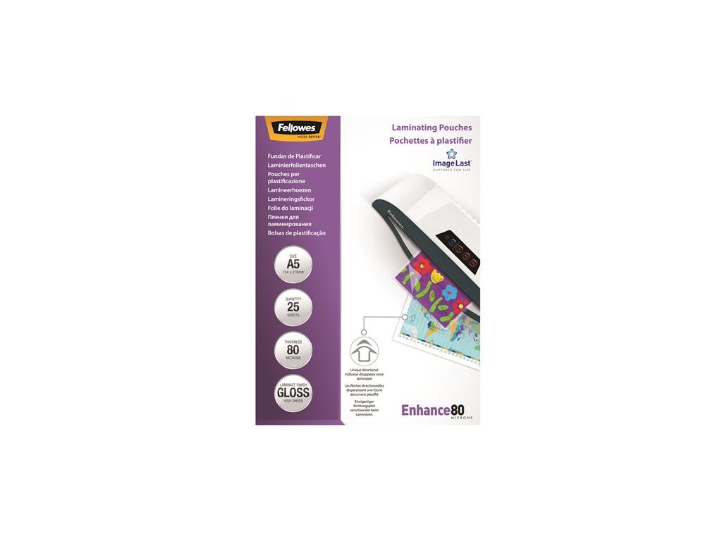 Laminovacia fólia, 80 mikr., A5, lesklá, 25 ks, FELLOWES