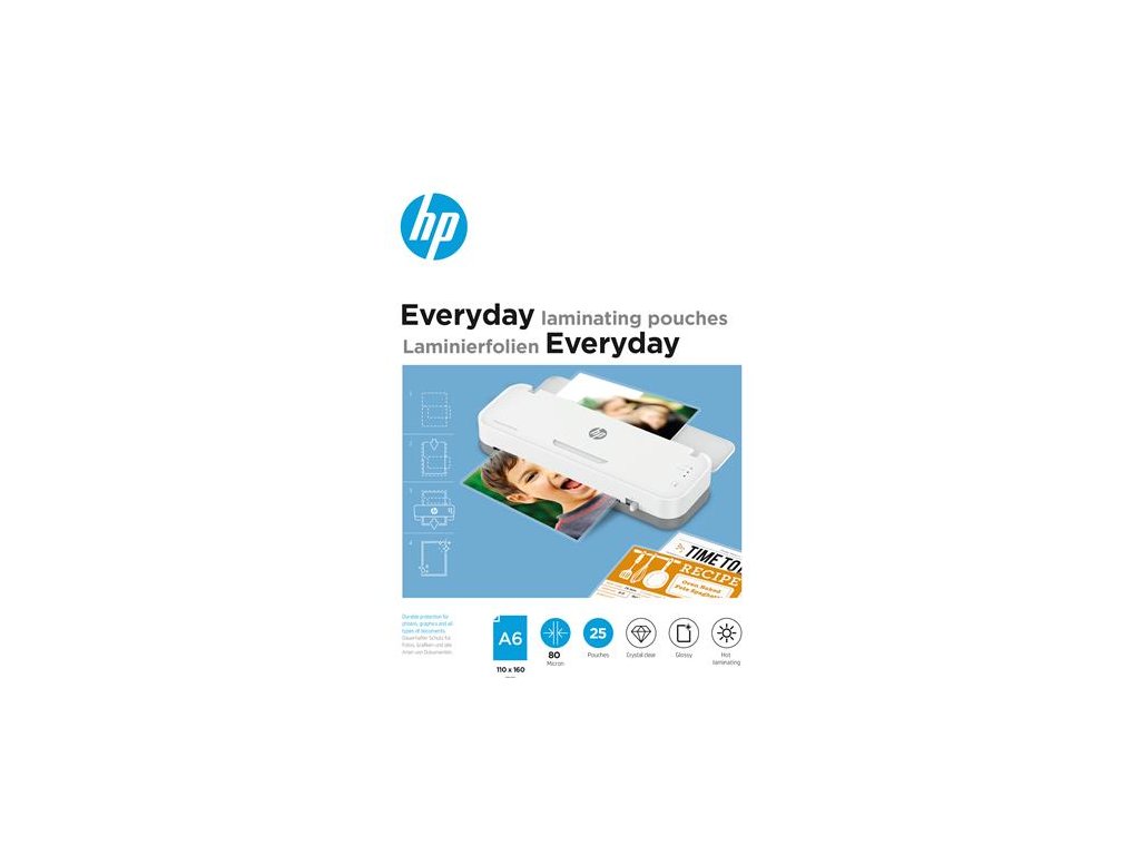 Laminovacia fólia, 80 mikrónovv, A6, lesklá, 25 ks, HP "Everyday"