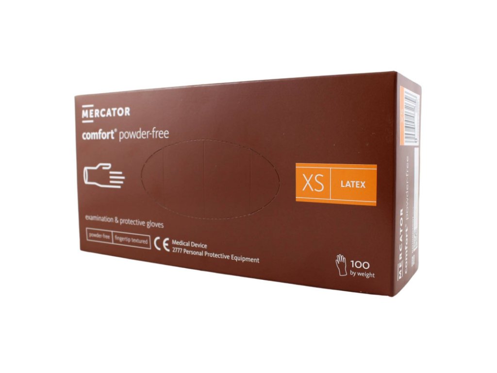 Latexové rukavice MERCATOR COMFORT nepúdrované XS 100ks Farba transparentná sú nesterilné a určené na jednorazové použitie latexové, hladké, pružné, na koncoch prstov sú textúrované poskytujú vynikajúcu bariéru poskytujú vysoký stupeň citlivosti Cena je za 1 bal./100 ksDodatočné parametre