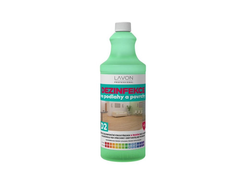 Dezinfekčný prostriedok LAVON na podlahy a povrchy D2 je biocídny čistiaci prípravok s vysokou penivosťou do potravinárstva, priemyslu, domácností a verejných priestorov. Určený na dezinfekciu a čistenie všetkých druhov podláh a nenasiakavých povrchov. Vysoká čistiaca a odmasťovacia účinnosť, vhodný aj na umývanie riadu. Likviduje baktérie a obalené vírusy: OTESTOVANÉ podľa STN EN 1276:2020, STN EN 14476+A2:2020.