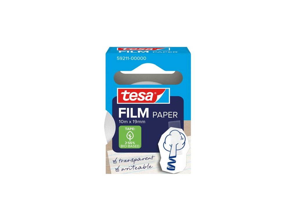 Priehľadná lepiaca páska tesafilm® s papierovým nosičom je mimoriadne všestranná a nemala by chýbať v žiadnej domácnosti, kancelárii ani škole. Dá sa popisovať a na svetlých povrchoch, ako je papier, je takmer neviditeľná.Presviedča jednoduchým použitím a všestrannosťou v každodennom živote. Vhodná na upevňovanie, označovanie, neviditeľné lepenie alebo opravu roztrhnutých stránok kníh bez ovplyvnenia čitateľnosti. Osvedčená kvalita tesa® je viditeľná aj pri používaní – páska sa odvíja potichu a vďaka papierovému nosiču sa ľahko trhá rukou. Pre presnejšiu aplikáciu je možné použiť vhodný odvíjač pásky. Spoľahlivá lepivosť je dosiahnutá vodou riediteľným akrylátovým lepidlom. tesafilm® papier je možné odstrániť z väčšiny hladkých povrchov bez zanechania zvyškov.